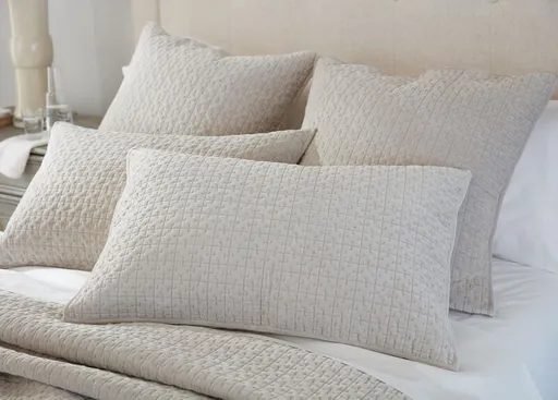 * Lustrous, quilted cotton velvet sham with updated, geometric stitch pattern. Reverses to a solid, coordinated cotton. Finished with a simple hem. Envelope closure.