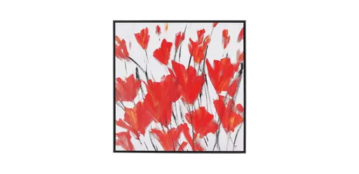 A minimalist palette—scarlet, alabaster, and ebony—emphasizes the texture of this floral artwork's hand-placed embellishments. With one-of-a-kind brush strokes, each poppy in this piece takes on a character of its own, adding a sense of movement and dimension wherever it's displayed.