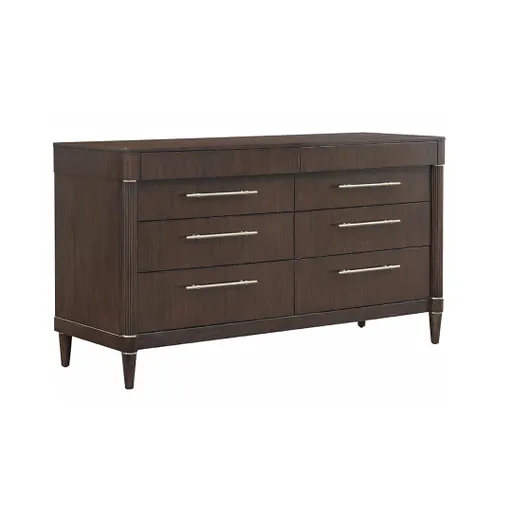 Thoughtfully crafted, the Asher Park Dresser brings refined design and versatile storage to your space. This dresser features eight drawers in a mix of sizes that are ideal for organizing everything from wardrobe essentials to smaller accessories. Finish in a rich brown, it’s paired with sleek custom bar pull hardware that add a modern edge, while the reeded corner posts and metal accents echo the neo-classic design. Rated at a “Better” quality level, the Asher Park Dresser delivers a cohesive, elevated style that's both timeless and practical. *Dresser Only. Mirror Sold Separately.
