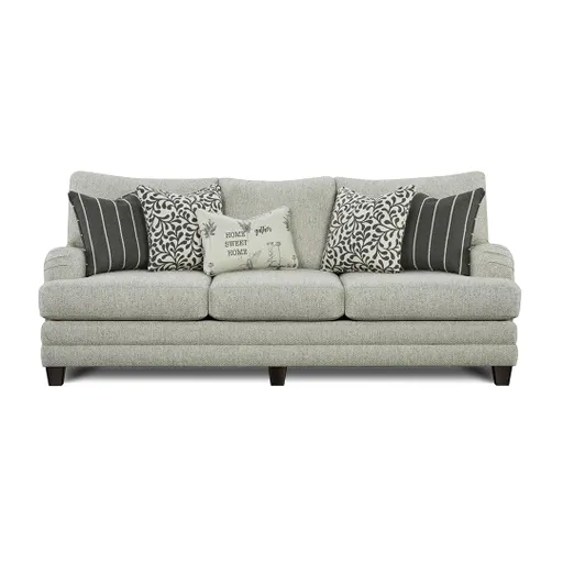 The Basic Berber Sofa combines timeless transitional design with modern functionality, making it a versatile and stylish addition to any space. Featuring elegant English arms, T-cushions, and a collection of bold and patterned accent pillows—including a charming "Home Sweet Home" kidney pillow—this sofa allows you to refresh your room’s look effortlessly. The sloping Charles of London arm design and tapered legs with a rich coffee finish add a touch of sophistication. Designed for durability and comfort, the loose, reversible T-cushion seat and back cushions help extend the life of both the cores and the fabric. Upholstered in Revolution fabric, this sofa offers exceptional stain resistance and easy cleaning, ensuring it remains beautiful for years to come.