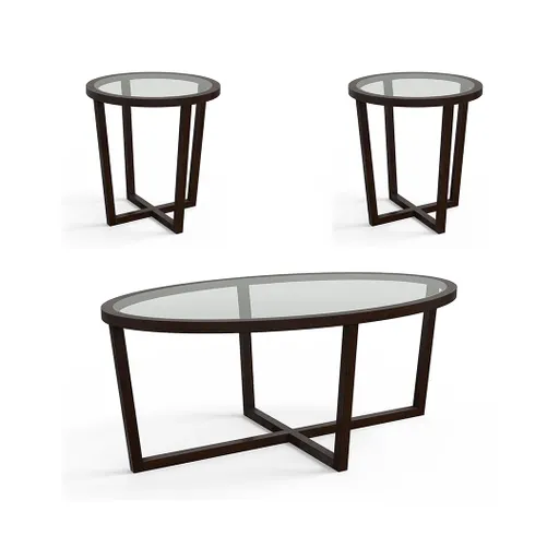 Create a spacious and breezy atmosphere in your living room using the Bowen Table Trio. The collection features tempered glass tabletops with sleek beveled edges, that allow the natural light to effortlessly fill the space while also providing durability to endure numerous gatherings or movie nights. The wooden frames are finished in Brown lending to a Boho charm and offers retro futuristic look that fits seamlessly into a variety of décor settings. This 3 piece set easily helps you put that finishing touch on any room.Includes: - Oval Coffee Table - Two Round End Tables