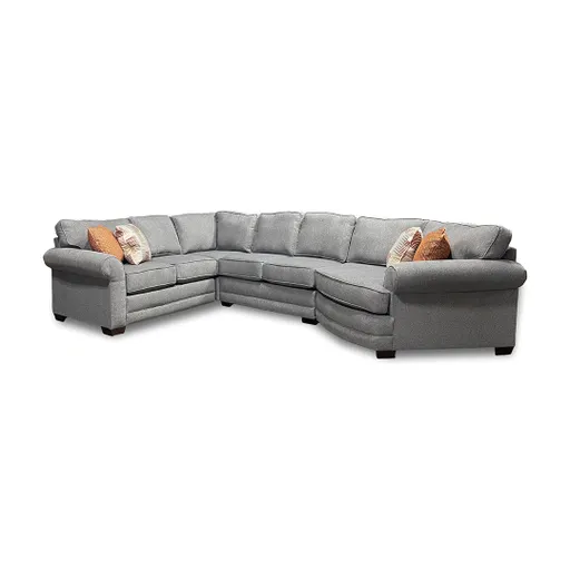 Made in the USA, the Brantley Sectional brings a relaxed, upscale comfort to your living room with its inviting silhouette and generous seating. Designed with a smooth blend of function and aesthetics, this sectional features durable performance fabric that is ideal for active households. Its soft gray color sets a versatile tone, enhanced by the plush back cushions and gently rolled arms that soften the overall profile. The included accent pillows in warm terracotta and geometric patterns add just the right pop of personality and texture. A standout feature is the cuddler chaise, perfect for cozy lounging or sharing space during movie nights. Rated at a “Better” quality level, the Brantley Sectional has a laid-back sophisticated feel, all while being family and pet friendly! Includes: - Left Arm Facing Loveseat - Corner Wedge - Armless Loveseat - Right Arm Facing Cuddler