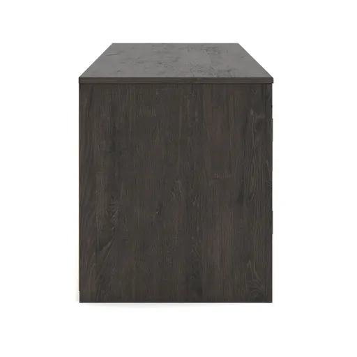 Blending rustic charm with modern sensibility, the Cayboni TV stand brings a refreshing sense of style to any living room or basement. The dark, weathered wood finish captures the warmth of vintage farmhouse design, while bold chevron-patterned cabinet fronts add a trendy, eye-catching twist. Clean lines and a low profile make it a versatile choice for both casual and contemporary spaces. Open shelving offers space for components or décor, and for those who crave a cozy ambiance, the unit can be enhanced with an optional fireplace insert. Found in our Outlet Locations and rated “Good” in quality, the Cayboni TV Stand is as practical as it is beautiful.