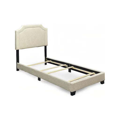 The Clifton Upholstered Bed showcases clean and timeless design, making it a versatile addition to any bedroom. Fully upholstered in a soft beige, this bed showcases a tailored silhouette with an elegantly curved headboard, adding a touch of subtle sophistication to its modern design. Designed with a smart-pack construction, it arrives as a complete bed conveniently packed in one box for easy setup. Its compact and stylish profile makes it an excellent choice for guest rooms, kids’ rooms, or smaller layouts. Rated at a “Good” quality level, the Clifton Upholstered Bed is a value-packed solution that adds a polished touch to any space.