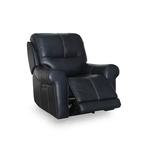 Relaxation meets refinement in the Delta Leather Zero-G Power Recliner. It features smooth navy blue leather on all touch surfaces, offering a soft, high-end feel where it matters most while the durable leather-match back and sides provide lasting style. Timeless details like rolled arms, contrasting stitching, and slight bucket seating enhance its classic silhouette. Power headrests allow for personalized positioning, while the zero gravity mechanism promotes better circulation and helps relieve pressure points. USB ports are discreetly located on the push-button control panel, keeping devices close. Rated at a “Better” quality level, the Delta Leather Zero-G Power Recliner is the perfect addition to your living room ensemble or as a stand-alone piece.
