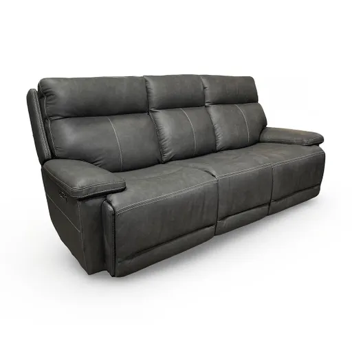 The Fletcher Power Reclining Sofa combines cutting-edge comfort with classic style. Upholstered in a sophisticated charcoal gray leather with vinyl accents, this sofa embodies modern refinement with a soft, subtle flair. Designed with your relaxation in mind, it boasts power recline and power headrests, allowing you to find your perfect lounging position with ease. The streamlined silhouette is complemented by padded foam arms that enhance comfort without sacrificing style. It even comes with innovative zero-gravity advanced technology to promote blood flow, reduce swelling, and create a sensation of weightlessness. Rated at a “Better” quality level, the Fletcher Power Reclining Sofa combines trend-forward design and unmatched comfort.