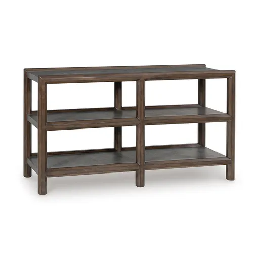 The Kalenny Sofa Table embraces the art of mixed-material design, bringing an urban edge and functional flair to your living room. Built with a combination of sturdy materials, this rectangular table balances durability with modern style. The faux cement finish delivers an industrial touch, while detailed moldings on the sides add a layer of refined character. With two large open display shelves, it provides ample space to showcase décor and add personal touches to your home. Rated at a “Good” quality level, the Kalenny Sofa Table is a smart choice for those who appreciate bold design.