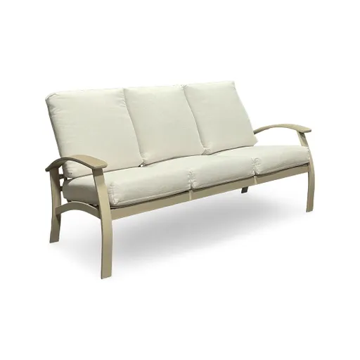 Create a relaxed outdoor retreat with the Montego Outdoor Sofa—a coastal-inspired piece that delivers both luxury and longevity. Built in the USA with a fully welded, powder-coated aluminum frame, this sofa resists rust and stands up to the elements thanks to its UV-resistant, water-repellent, and anti-microbial performance fabric. Plush seat and back cushions offer generous comfort for lounging, entertaining, or stretching out solo. Wrapped in a soft beige frame its airy color palette is complimented by creamy upholstered cushions that are removable. Rated at a “Best” quality level the Montego Outdoor Sofa anchors your outdoor seating area with a fresh, breezy vibe and everyday comfort built to last.