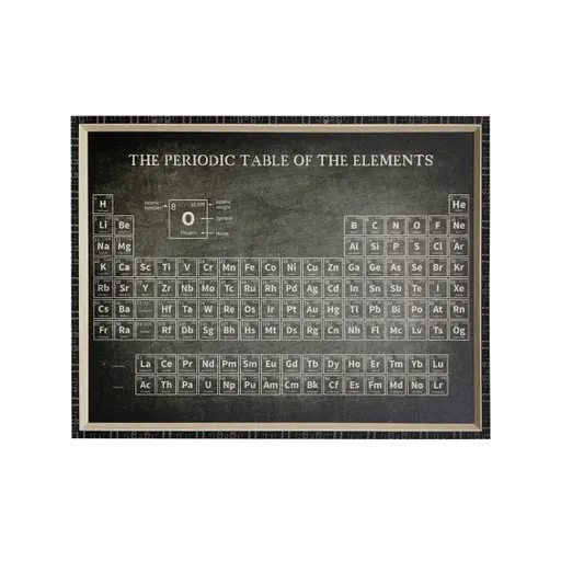 Elevate your space with the Periodic Table, a stunning framed print that blends science and style seamlessly. This textured print features a chalkboard-inspired design, giving it a vintage and academic charm that’s perfect for any study, office, or modern living area. Rated at a “Better” quality level, the Periodic Table pairs well with contemporary, industrial, or rustic decor themes.