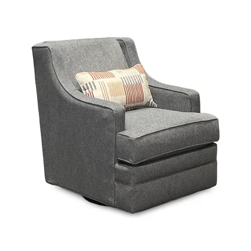 Made in the USA, the Reagan Swivel Glider Chair is designed to bring movement and comfort to your space. With a smooth glider design and 360-degree swivel base, it’s perfect for enhancing relaxation and conversation, giving you the freedom to turn, rock, and settle in with ease. Upholstered in soft gray fabric, this chair pairs a timeless silhouette with sloped arms and a geometric lumbar accent pillow for a look that feels classic with a touch of modern style. A reversible seat cushion with cushion vents and a self-healing zipper help maintain comfort and performance over time. Rated at a “Better” quality level the the Reagan Swivel Glider Chair delivers dependable construction and inviting design.