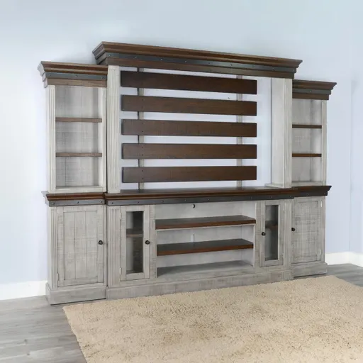The Stanley Entertainment Center is designed to bring your living room relaxation to new heights. Whether you’re indulging in movie nights with the family or spending some time alone catching up on your favorite shows, this center provides the perfect backdrop. The two-tone finish of this design adds sophistication and makes the overall feeling in the room warmer and more inviting. With open shelves, concealed compartments, and slots for easy wire management, it’s easy to maintain a clutter free environment while showcasing your personal style and flair.