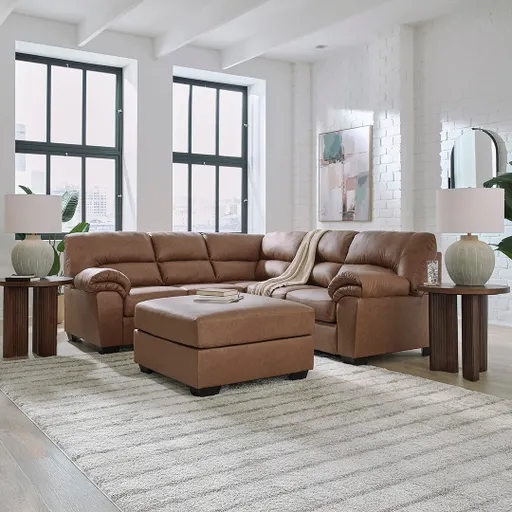 Classic comfort meets easygoing style with the Willow Sectional II with Ottoman. Designed as a two-piece configuration with a sofa and loveseat joined by a corner wedge, this sectional offers plenty of room for bigger families or anyone who just wants more space to stretch out. The firmly cushioned ottoman brings versatility to your space that’s ideal for propping up your feet or doubling as a casual coffee table with the addition of a tray. This setup is a smart choice for any living room looking for that polished leather look, without the high price tag. Found in our Outlet locations and rated at a “Good” quality level, the Willow Sectional II with Ottoman delivers everyday relaxation without compromising on style.