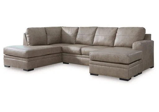 Bring a touch of indulgence and affordability into your home. The Amuleto sectional with chaise prioritizes comfort to fit your modern lifestyle, with richly neutral leather and faux leather upholstery embracing you in irresistibly soft seating. It's a chic, contemporary way to complete your home's entertainment area.