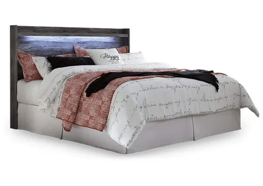 Rest in the beachy style of the Baystorm king panel headboard. Its driftwood and surfer-inspired smoky finish and cool LED lighting give this headboard a rustic look that's perfect for creating an island oasis. Clean lines and modern charm blend for an authentic look to be enjoyed for years to come.