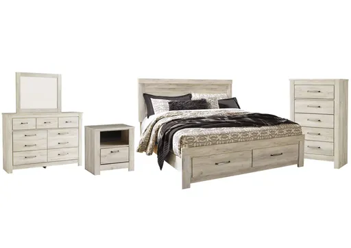 Bellaby King Platform Bed with 2 Storage Drawers with Mirrored Dresser, Chest and Nightstand | Furnzy.com - Shop local furniture stores in one place