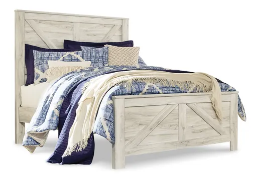 It’s gorgeous, it’s modern farmhouse, it’s the Bellaby queen crossbuck panel bed. Wispy, whitewash finish infuses so much character without masking the grain for that weathered, rustic look you crave. Clean-lined, classic panel styling provides a country chic bedroom retreat that’s a breath of fresh air. Mattress and foundation/box spring available, sold separately.