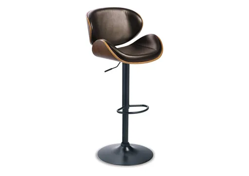 Style takes quite a modern turn. Sporting a distinctively contoured back and seat design, this upholstered swivel bar stool is sure to bring an elevated look to your living space. Wrapped in a brown faux leather upholstery, the seating area’s artful contours are accentuated with a faux wood finish.