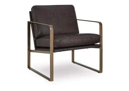 Wowing with supple dark brown leather and a metal frame in a soft goldtone, the Bradett accent chair brings an element of modern sophistication. An ultra-cool base gives so much urban industrial appeal.