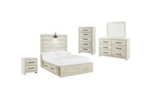 Cambeck Full Panel Bed with 2 Storage Drawers with Mirrored Dresser, Chest and Nightstand
