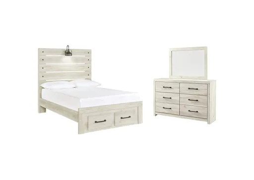 Cambeck Full Panel Bed with 2 Storage Drawers with Mirrored Dresser | Furnzy.com - Shop local furniture stores in one place