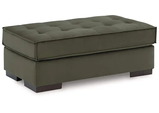 This sleek oversized accent ottoman offers a highly contemporary look with plenty of space to spread out. Dramatic tufted detailing and luxurious upholstery in a rich olive color create a sophisticated atmosphere. This ottoman is perfect for those who love to entertain, or simply relax, in uptown style and comfort.