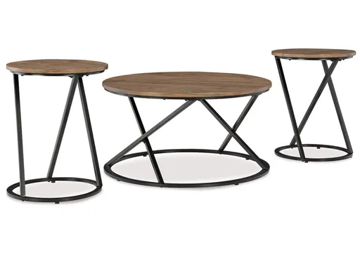 When it comes to good looks, the casual contemporary Cassbryn table set makes such a wonderful first impression. The sleek black metal frames serve up a cool modern vibe, while the circular tops help make the most of small spaces. So go ahead and bunch the end tables with the coffee table for a trend-right style statement.
