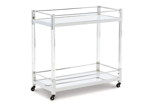 Reflect your love for contemporary style with the Chaseton bar cart. With two shelves made with mirrored glass, it adds both light and a touch of glam to your space. A clear acrylic and chrome-tone frame is a modern take on understated elegance. And thanks to rolling casters, serving your guests has never been easier.