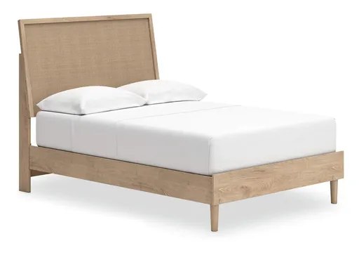 Clean-lined and contemporary—but far from stark—the Cielden full panel bed is a fresh style awakening. Pairing a light finish with replicated oak grain and textured beige details that replicate the look of cane, its mixed materials bring a naturally versatile vibe to your bedroom. Talk about style with added dimension. The bed's simplicity plays perfectly with the modern aesthetic and is the stuff dreams are made of.