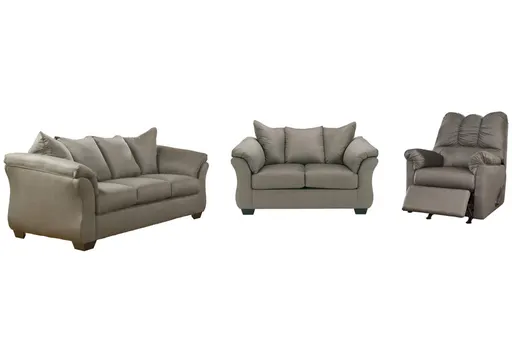Talk about fine lines and great curves—that’s the beauty of the Darcy sofa, loveseat and rocker recliner. Made to suit your appreciation for clean, contemporary style, the fashion-statement seating is complete with a striking flared frame, comfy pillow top armrests, and an ultra-soft upholstery that holds up to everyday living.