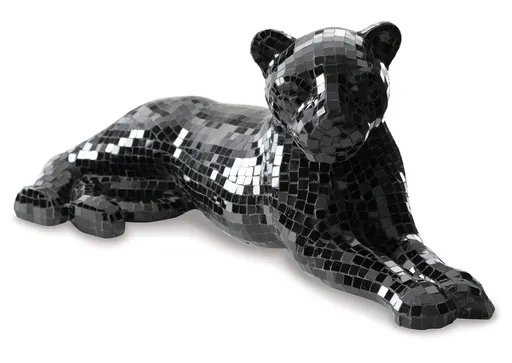 Decorate your home with the iconic Drice mixed-media sculpture. Handcrafted with a mosaic glass and paper composite, this panther will add an exotic element to any space. Create a fierce look in your bedroom, or a luxurious allure in your living room, with this unique and thought-provoking piece.