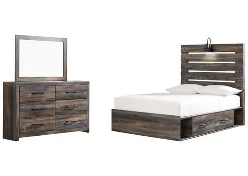 Drystan Full Panel Bed with 4 Storage Drawers with Mirrored Dresser | Furnzy.com - Shop local furniture stores in one place
