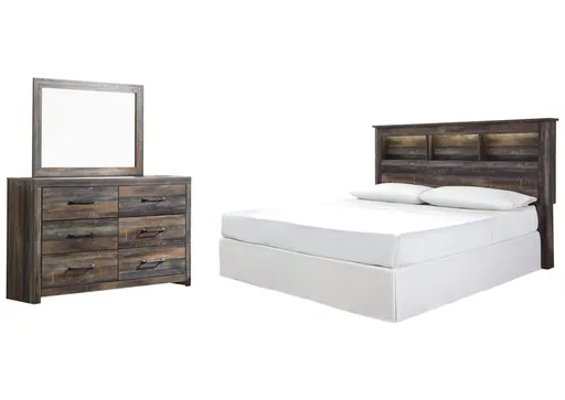 Drystan King/California King Bookcase Headboard Bed with Mirrored Dresser | Furnzy.com - Shop local furniture stores in one place