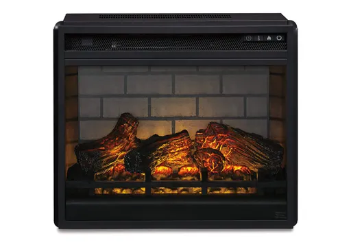 Enjoy the cozy feel of a cracklin’ fireplace without the hassle, maintenance or cleanup. Available as an addition on select TV stands and entertainment centers, this fireplace insert with faux firebrick surround operates with or without infrared heat and includes a multi flame feature, 7-level temperature setting, five brightness levels and an LED glowing embers effect.