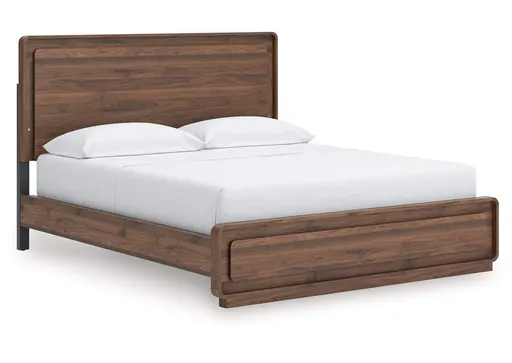 Grace your restful retreat with an added dose of refinement. This California king panel bed showcases a stunning rich brown wood tone, while the rounded frame softens its silhouette to elevate the look. And it seamlessly incorporates forward-thinking function, with an LED backlight in the headboard that can be easily accessed from both sides of the bed. It’s curated, contemporary and utterly chic.