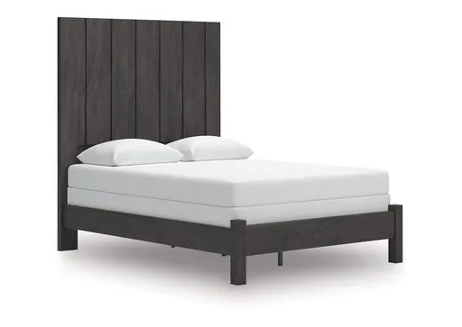 Find serene simplicity in the clean lines and dark neutral tones of this queen panel bed. It’s a sincere approach to modern elegance, giving you high style at a great value. Vertical planks decorate the generously scaled headboard to give the illusion of additional height, polishing off the piece in grand fashion.