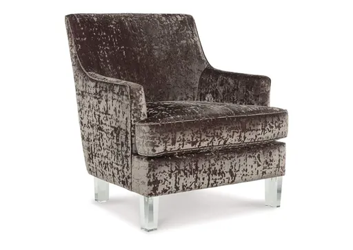 The Gloriann accent chair with shelter arm styling merges contemporary and traditional styling in the most beautiful way. The combination of polyester crushed velvet upholstery and tapered clear acrylic legs makes for one cool contrast. Combining comfort and fashion-forward design for the modern enthusiast.
