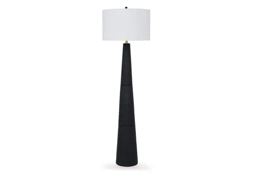 Like a contemporary aesthetic? Embrace it with the chic Hallburg floor lamp. A mastery in minimalism, it wows with a textured black finish and stylish drum shade, offering a touch of refined elegance. This piece will illuminate your living area or home office with just the right amount of sophistication.