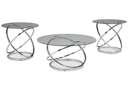 If you’ve been holding out for an ultra-contemporary look that’s delightfully unique, the Hollynyx round coffee table set is clearly worth waiting for. Chrome-tone metal rings are topped with clear glass with polished edges for a masterfully modern look with minimal fuss.