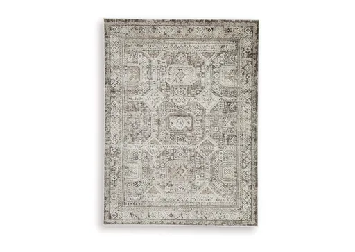 5'3"x7'6" fiber rug-ikat traditional medallions pewter | low pile | rectangle
