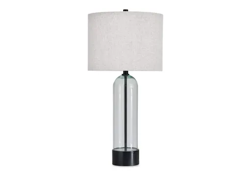 The Kerrbrook table lamp is an illuminating mix of versatile form and modern function. Luxe black accents are complemented by clear glass, with a white drum shade topping off the look. Easily paired with aesthetics ranging from casual to contemporary, this lamp epitomizes stylish simplicity.