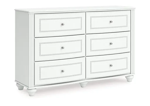 Fit for a princess. This dresser’s crisp matte white finish pairs with charming elements like bun feet, crystal knobs and ornate beading—the perfect crowning touches for your girly girl. This spacious six-drawer piece is sure to make your little one feel like royalty.