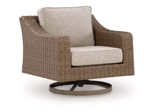Who says the great outdoors isn’t made for luxury living? This outdoor swivel lounge chair offers all of the high-end design, plush comfort and durability you could ask for, and then some. Its all-weather aluminum frame and resin wicker provide the easy-breezy look you love without the high maintenance. And rest assured—the high-performing Nuvella® fabric is made to stand up to the elements.