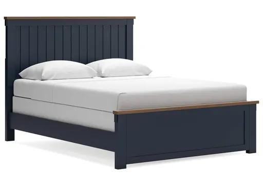Add homespun charm to your restful retreat. A modern take on a timeless silhouette, the Landocken queen panel bed pairs a dark slate blue finish with light brown accents. The slatted headboard in a classic Shaker style brings an air of beautiful simplicity to the bedroom. Whether it's part of a charmingly curated guest suite or a casually carefree kid’s room, this bed is a welcome addition.