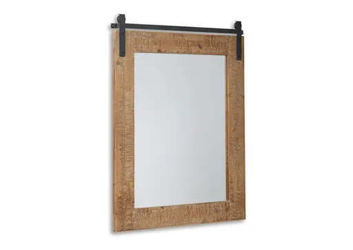 Getting the casual yet complete look you love is a breeze with the Lanie accent mirror. With its rough sawn wood and metal faux barn door track, it adds a touch of warmth to any space.