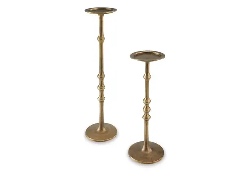 Inspired by ancient counting methods, the Larwick candle holder set features a unique notched design. The pieces, in two different sizes, add depth and create a festive atmosphere. Perfect for displaying pillar candles on a mantel or table, these metal candle holders are pure artistry.