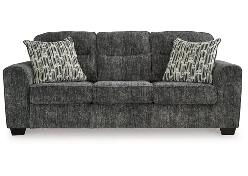 The Lonoke sofa speaks to those drawn to fresh, contemporary style with richly neutral appeal. Subtle and sophisticated, the plush upholstery and dark tri-block legs are a natural complement for so many color schemes. Two accent pillows make the seating even more welcoming. Curling up on this sofa to enjoy a night in is never out of the question.