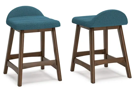 A refreshed take on retro aesthetics. The Lyncott upholstered bar stool adds an air of playful simplicity to your dining space, capturing the architectural language of mid-century stylings. The seat invites the eye with a soft-edged silhouette and chic blue cushion. A casual, yet timeless, finish on the frame creates visual contrast to complete this study in form and function.