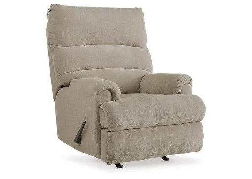 Roll out a cool look for your man cave or femme den with the Man Fort recliner. Waterfall cushioning on the high back is paired with a double-roll footrest for a high-style aesthetic that cradles you in comfort from head to toe. Tweed-weave neutral upholstery is decadently soft and loaded with texture.