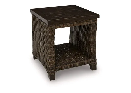 Looking for that special spot to relax and entertain on your deck or patio? Then you'll love this outdoor end table. With beautifully textured resin wicker over a sturdy aluminum frame, it brings so much style and warmth to your outdoor space. And the hand-brushed, wood-look finish means you can spend less time worrying and more time chilling. What a smart and stylish way to create a beautiful, lasting space for everyone to enjoy.