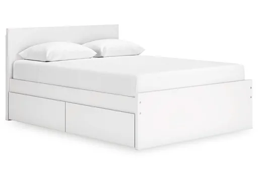 Create the modern bedroom of your dreams. The Onita queen panel platform bed offers a minimal design with maximum style, combining ultra-clean lines and an easy-elegant solid white finish with a hardware-less aesthetic. Spacious storage drawers with ball-bearing glides make putting things away a snap. And this bed doesn't need a box spring or foundation, so you can splurge on a mattress that's sure to carry you away to a soothing place.